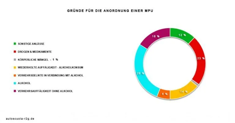 Von rund 100.000 Menschen, die bundesweit pro Jahr die MPU absolvieren, kommen laut Statistik zwei Drittel wegen einer Fahrt im Alkoholrausch, 20 Prozent treten nach Drogen- oder Medikamentenmissbrauch an. Die übrigen 14 Prozent sind Punktesünder. Dabei sind extremes Fahrverhalten im Straßenverkehr und als Konsequenz die MPU beinahe ein reines Männerproblem. Der Anteil der Frauen, die zur Untersuchung vorgeladen werden, liegt gerade einmal bei fünf Prozent.